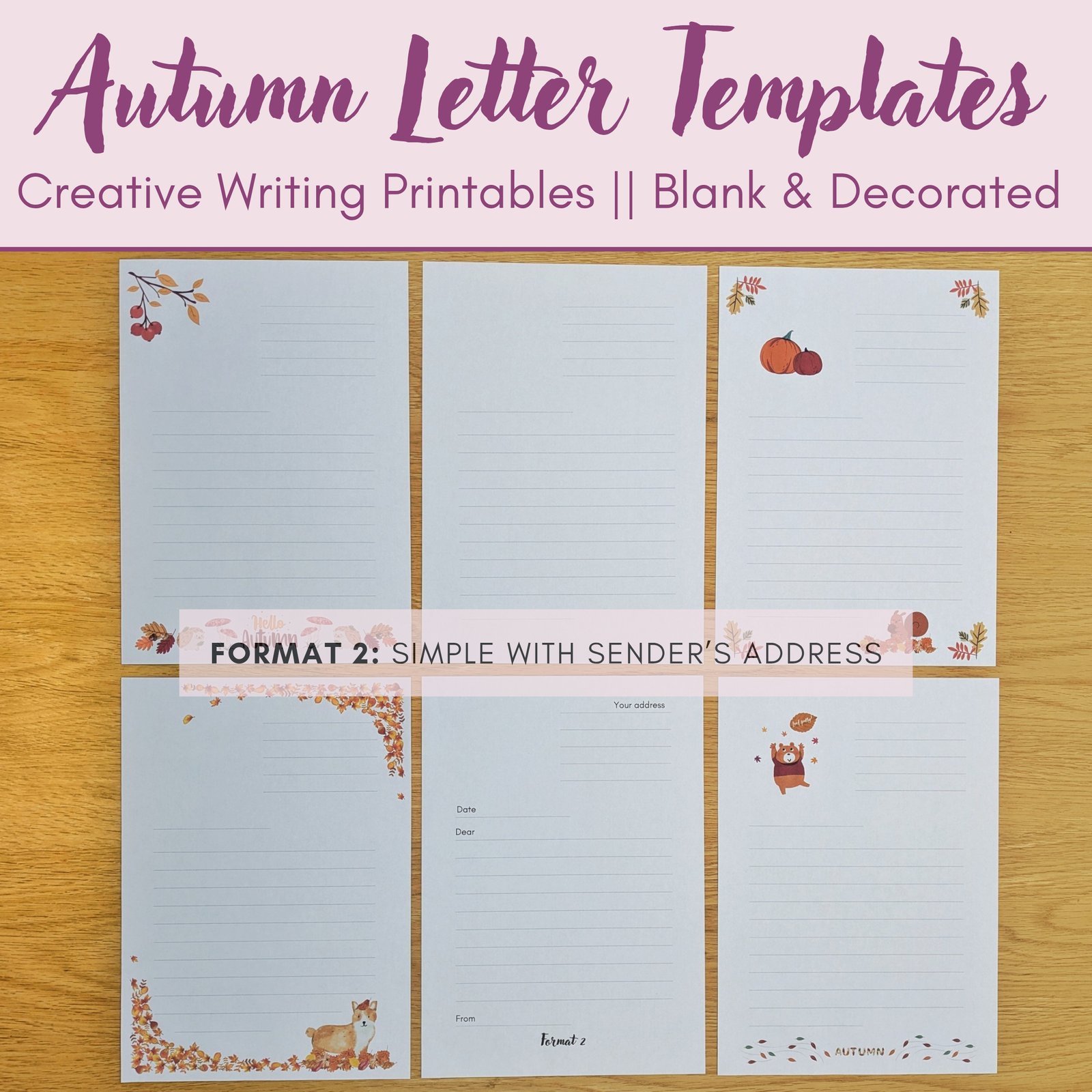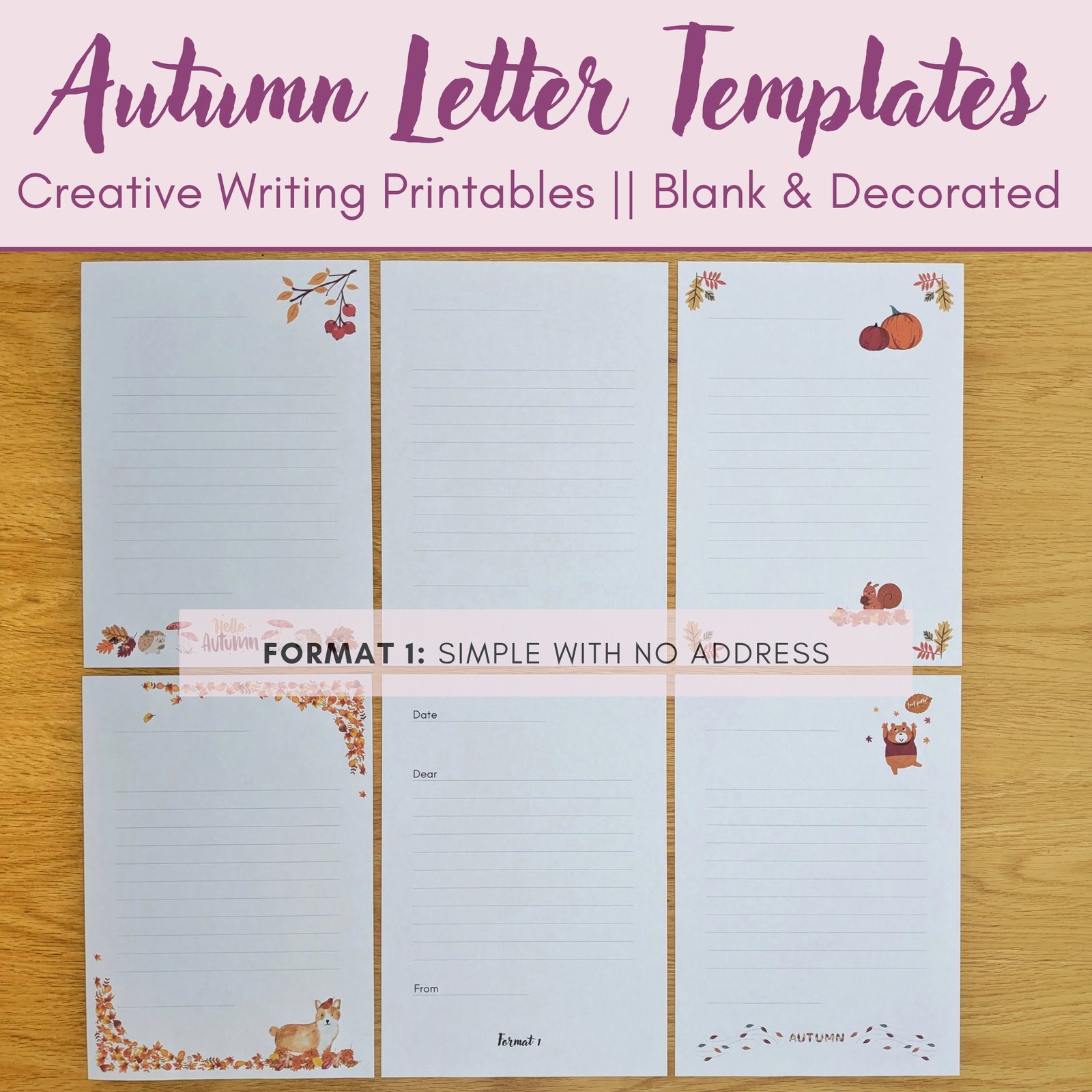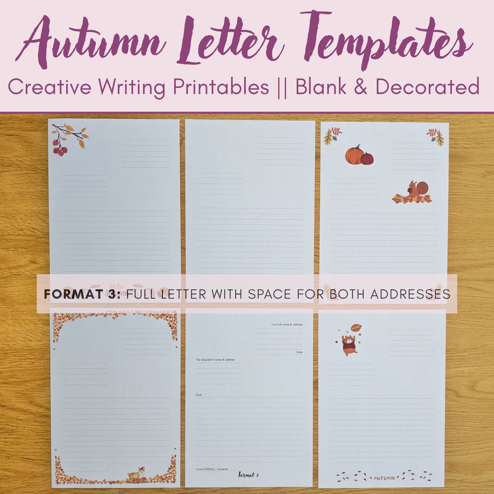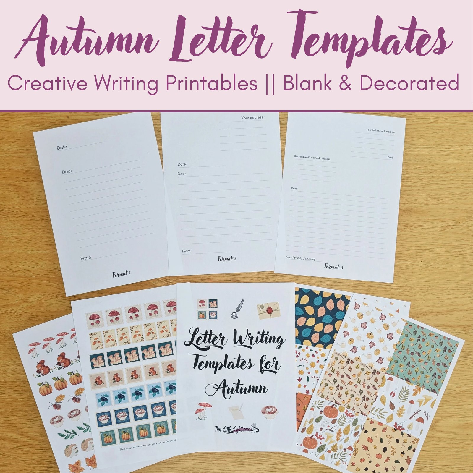 Digital Download (PDF): Letter Writing Templates for Autumn