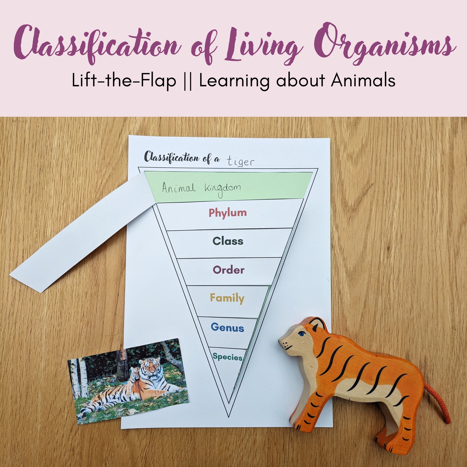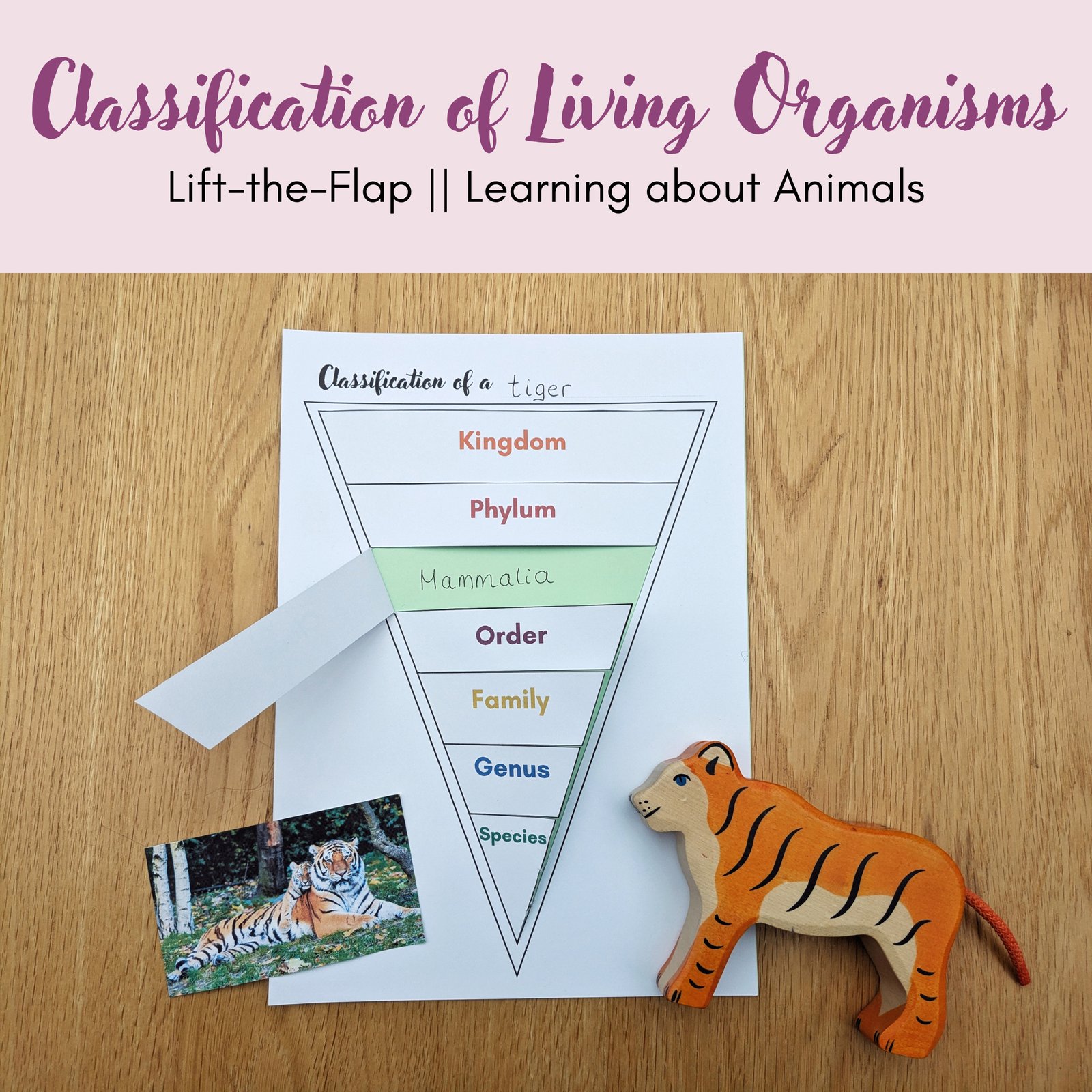 Designed so that your student can lift-the-flap and write under each of the seven levels of the Linnaean system of classification (kingdom, phylum, class, order, family, genus, and species) for a specific animal, plant or other living organism.